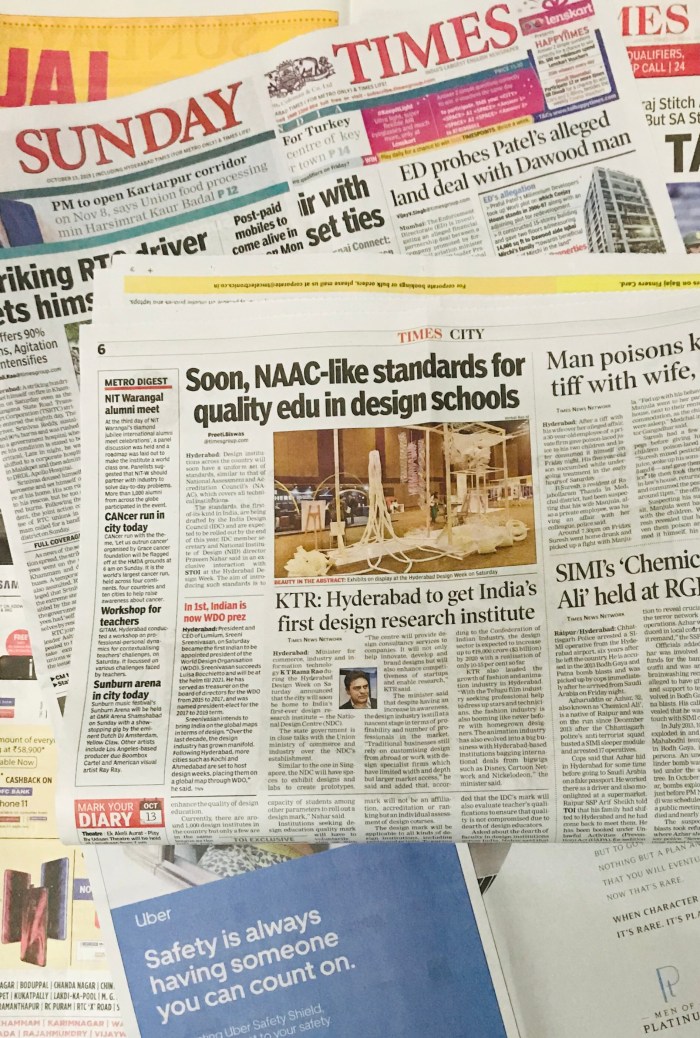 Fractals Workshop Exhibition at Hyderabad Design Week Expo // Sunday Times / Times of India // October 2019 Posted on October 12, 2019October 22, 2019 by new nomad in media, praise share this:Share Click to share on Tumblr (Opens in new window) Tumblr Click to print (Opens in new window) Print Related
