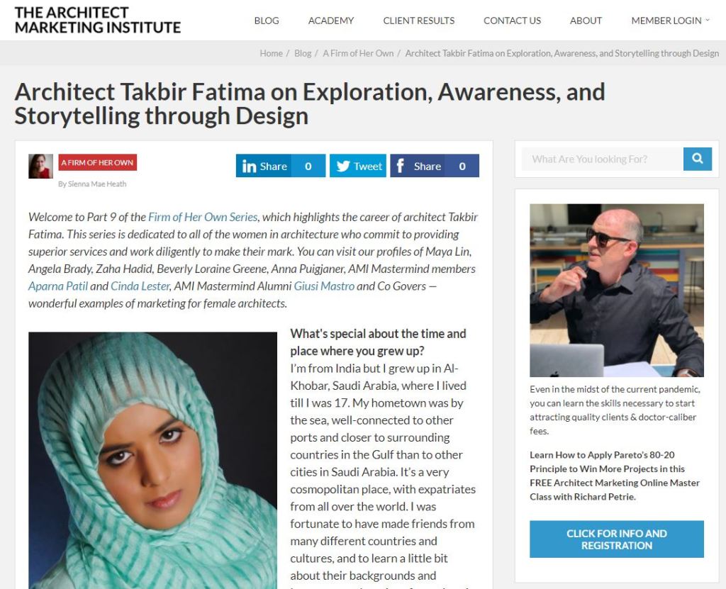 Interview with Takbir on the Architect Marketing Institute // October 2020 Posted on October 2, 2020February 9, 2021 by new nomad in interview, media, praise share this:Share Click to share on Tumblr (Opens in new window) Tumblr Click to print (Opens in new window) Print Related