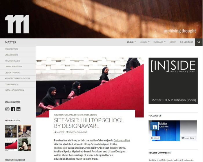 Architect and Urban Designer Arshiya Syed writes about her experience of the Hilltop School for Matter