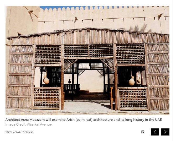 Associate Architect Asna Moazzam's talk on Revival: Arish Architecture appeared in the Arts + Culture section of Gulf News.