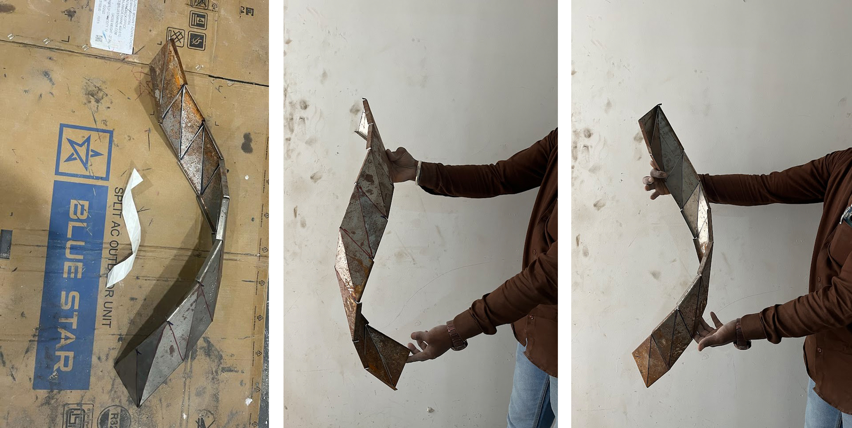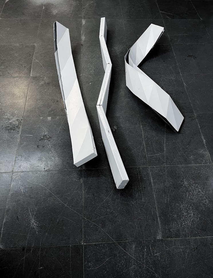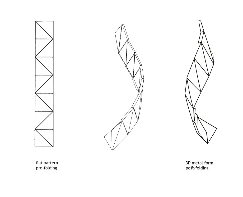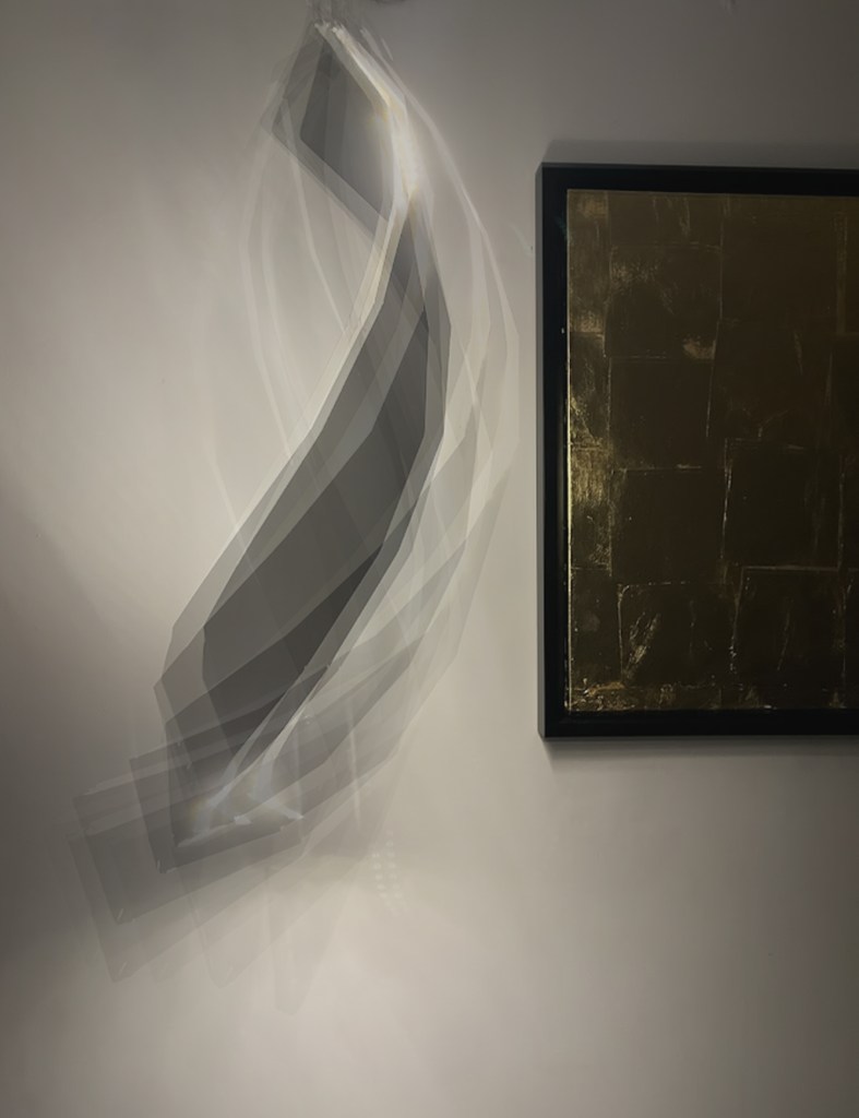ChronoWave is an exploration of depicting time through alternative, fluid, synchronous movement. Learning from origami folding of paper, and tessellation patterns, and exploring folding as a means of fabrication, ChronoWave captures time as light in motion. A folded ribbon of metal spirals with the rhythm of a clock, its glow tracing waves of illumination across space. Inspired by chronophotography, the capture of motion as an overlapping composition of still images, ChronoWave depicts time, not in increments, but in geometry, in states of being, in ever-changing form. It portrays spatial moments flowing into each other. ChronoWave is at once an artistic gesture, a light sculpture, and a timepiece.