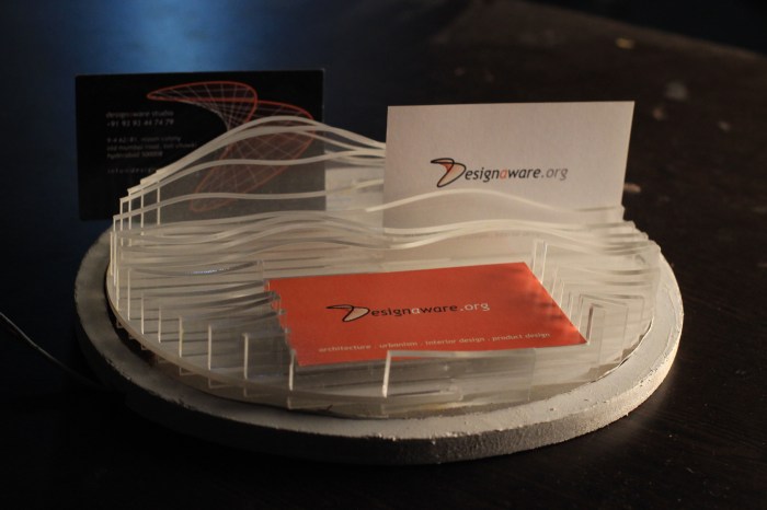 Inspired by contours of the earth, this layered accessory serves the dual functions of an accent light as well as a business card holder. Cards can be stashed face-up or vertically in between the contours. The multiple layers and diffused light add depth to the lightweight, transparent material.