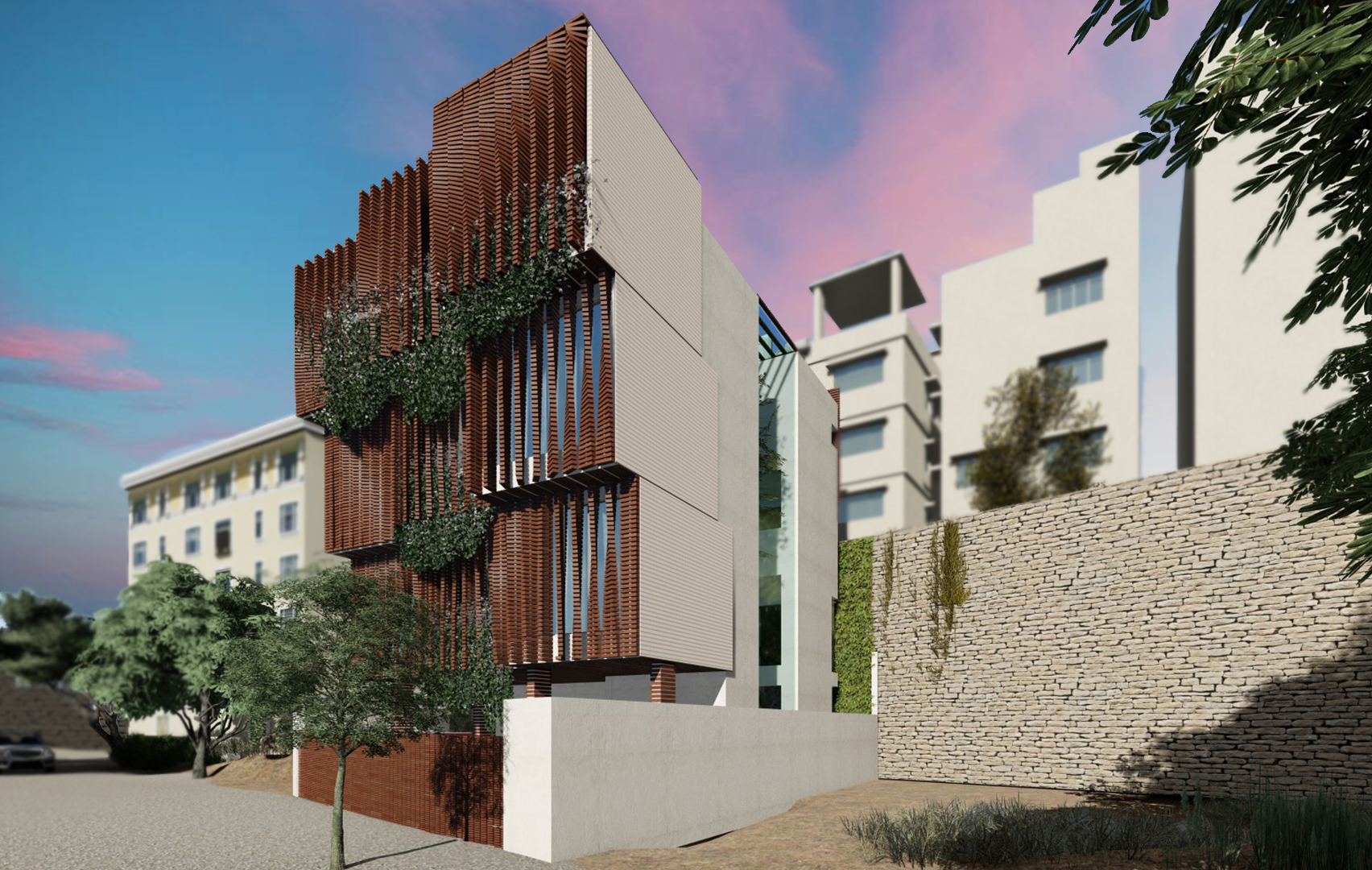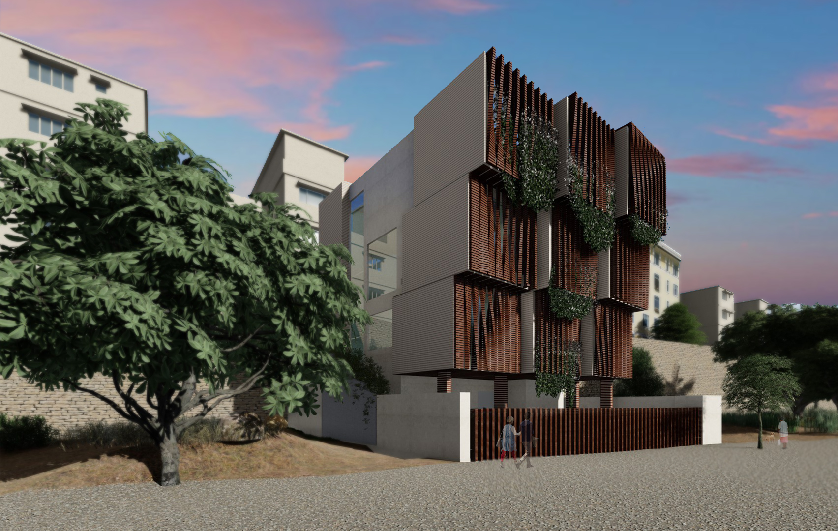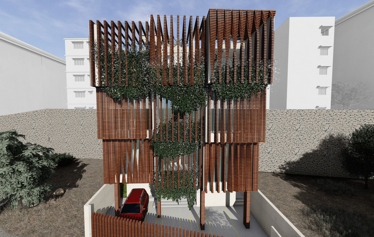 Design of a family residence on a skewed plot resulted in staggered massing of levels inspired by the first movement of Beethoven’s 5th symphony.