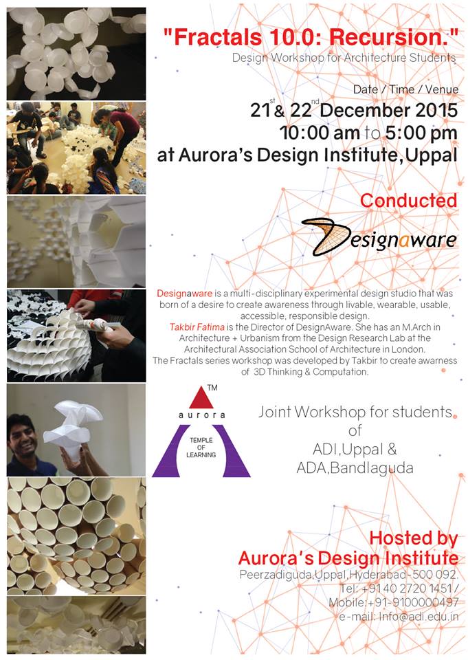 fractals 10.0 :: recursion Type: 2015, awareness, design research, Exhibitions, Fractals Workshop, process, Teaching Year: December 2015 School: Aurora Design Institute Location: Hyderabad, India Related