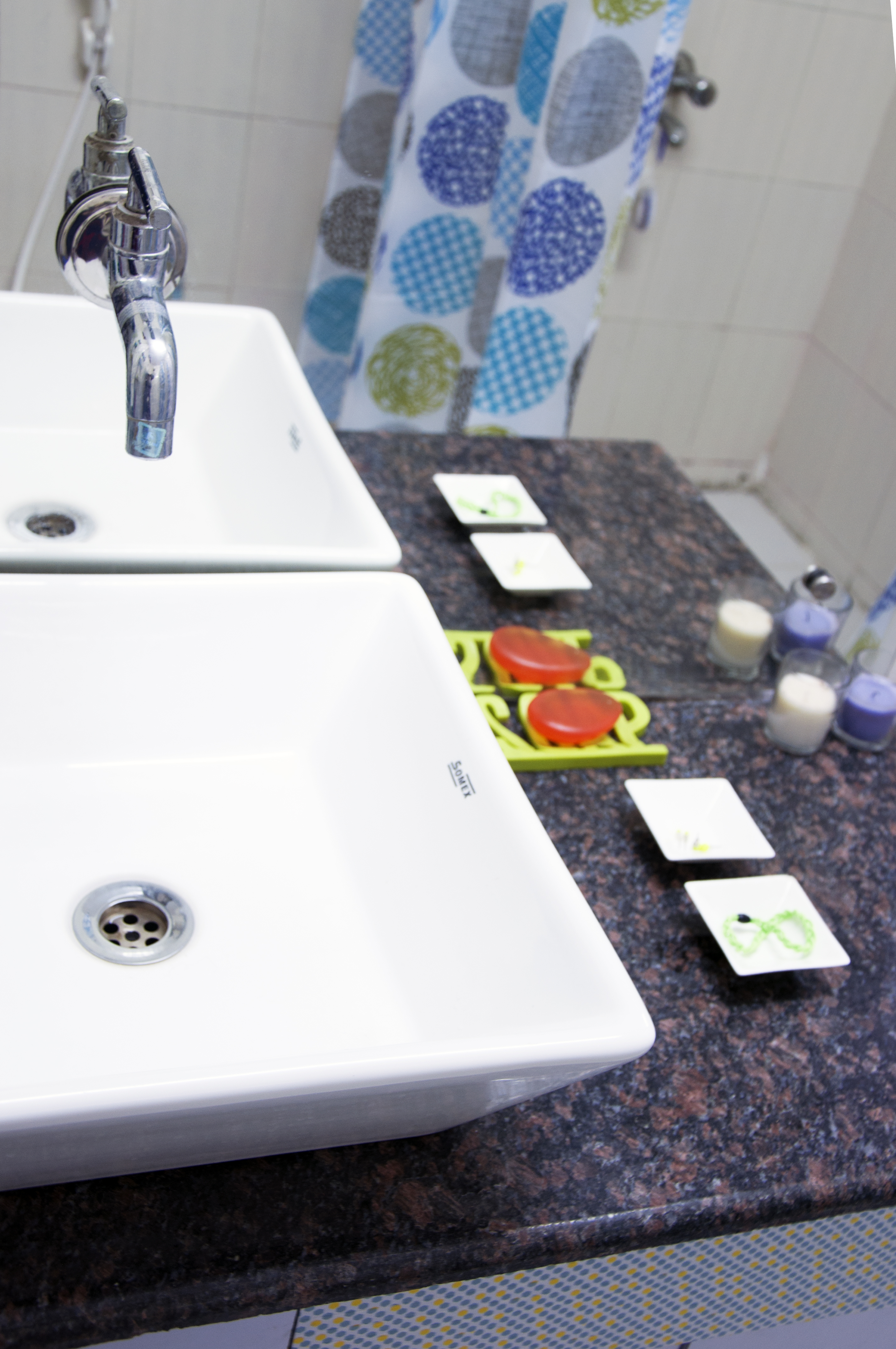 lime/blue bathroom