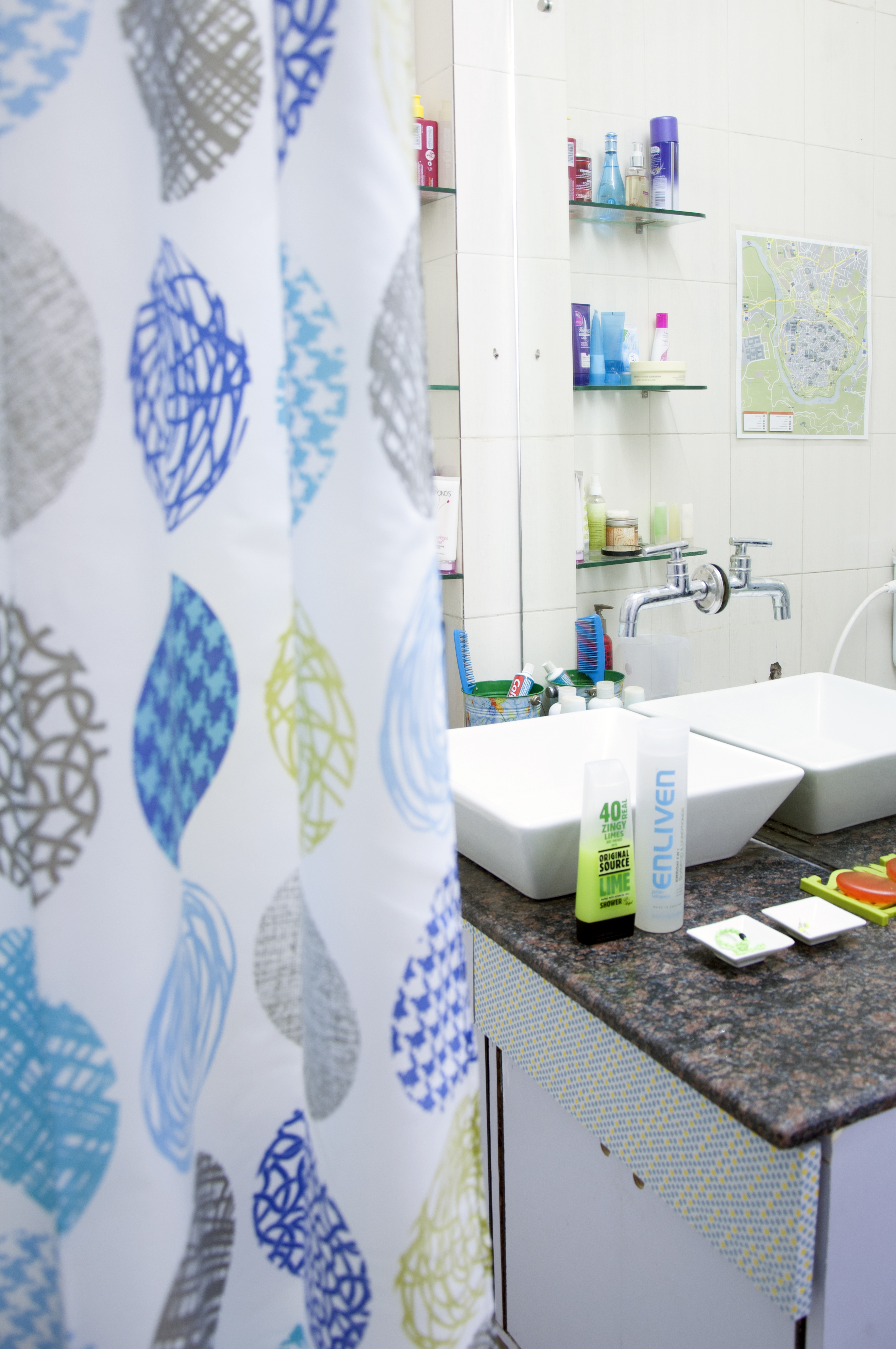 lime/blue bathroom