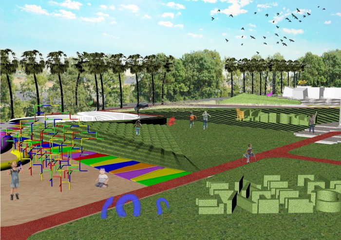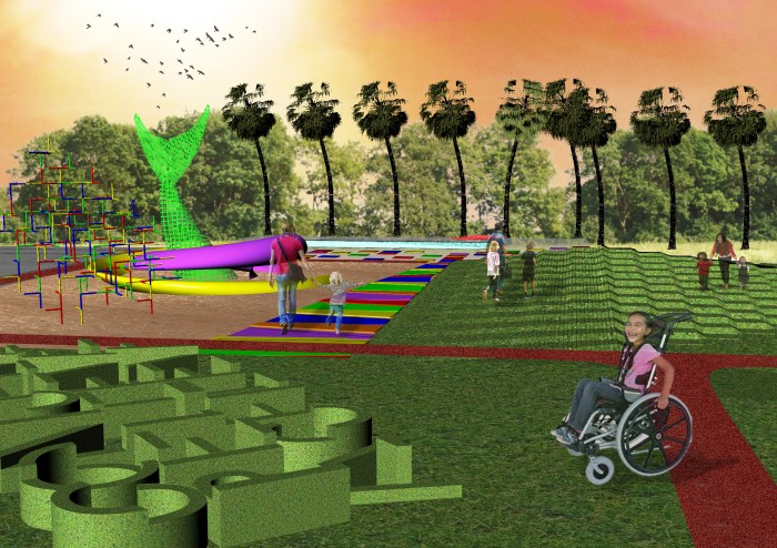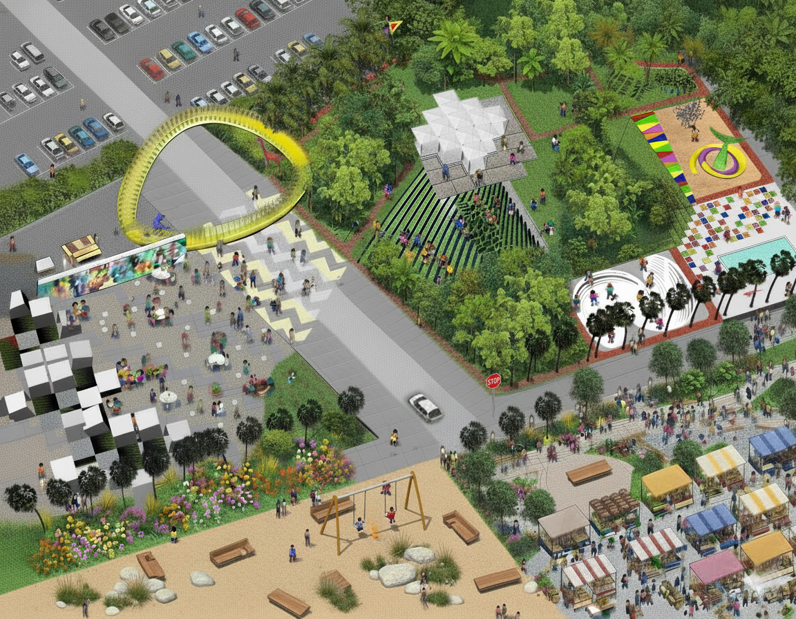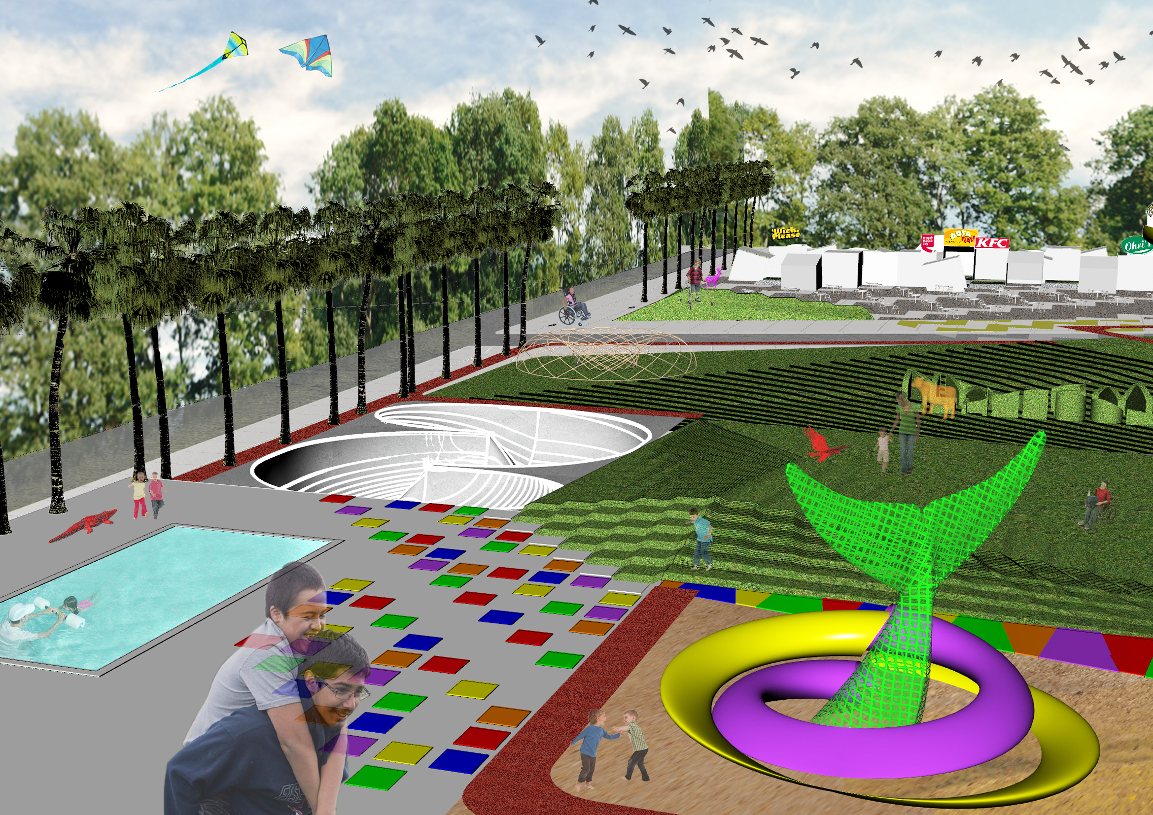 Universal design and accessibility are often-overlooked issues of great impact in the design of public spaces. The design of this park is aimed at serving those who are differently-abled through accessible and customized spaces, play areas, gathering areas and a community hall. At the same time, those who are considered “normal” are not excluded. Only when we accept that there is no such thing as normal or regular will we be able to truly celebrate diversity in an intersectional manner. This is a park for all, there is no normal.
