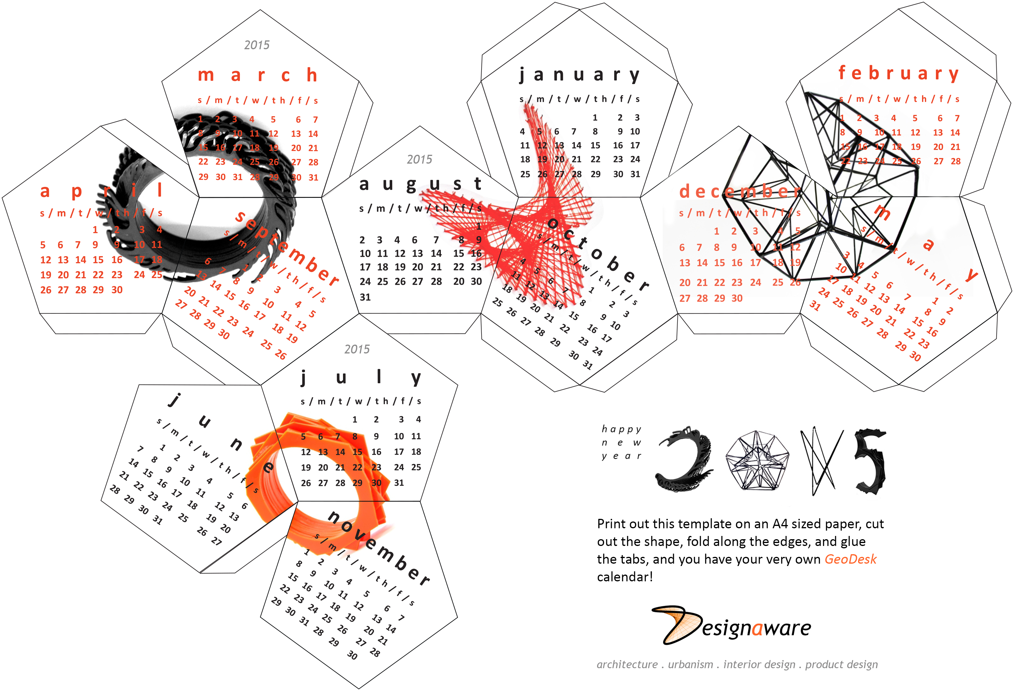 DIY // GeoDesk 3D 2015 Desk Calendar // download