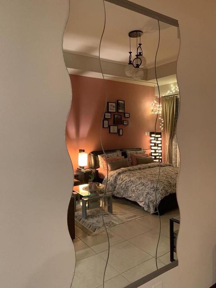 The design brief was to revamp the studio apartment to reflect the personality of the young lady who occupied it. The chic vintage look was created in response to the client’s love for pastel shades and floral details. The studio also showcases the client’s love for photography and her fascination with motivational quotes. The new design and color palette had to work around and with the existing couch, bed set, curtains and lamps. Eventually a subtle understated pink shade balanced with warm grey elements was chosen to balance the existing furniture. Attention was paid to every little detail with hand-picked knick-knacks such as the vintage bird cage which was carefully filled with carnations and roses. The fairy lights on the wall were designed to read the word “soul” and run down around the bird cage for a classic look. The cushion prints have been selected keeping in mind the vintage theme of the space and a collage of original black and white photographs by the client and wall sticker adorn the entrance area. A grey and white dining table along with a similar coffee table was added to complete the look.