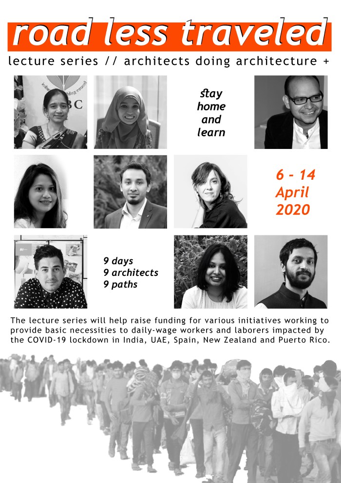 DesignAware is raising awareness about these food drives on our social media channels. A virtual lecture series by architects from all over the world, Road Less Traveled, has been organized to raise funds that are being channeled towards providing food and other necessities to displaced construction and daily-wage workers during the lockdown. Speakers participating in the lecture series have volunteered their time to raise funds for this cause, identifying localized relief efforts in their home cities. This lecture series can be downloaded for viewing and the fee would contribute towards this cause.