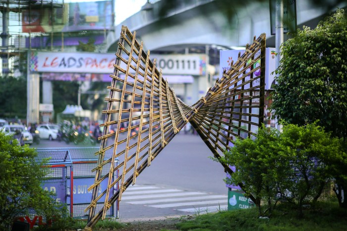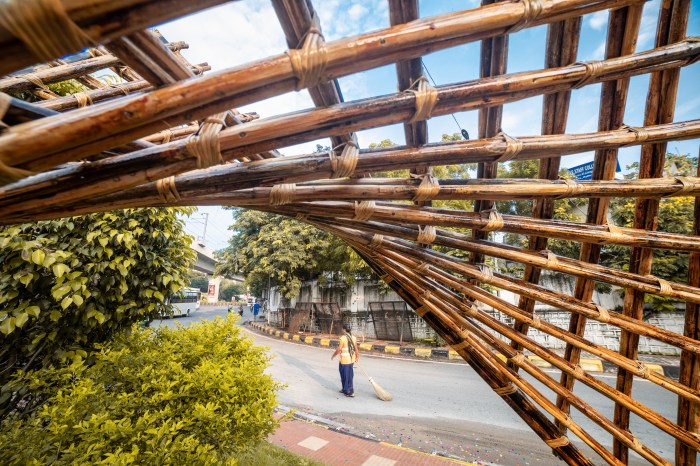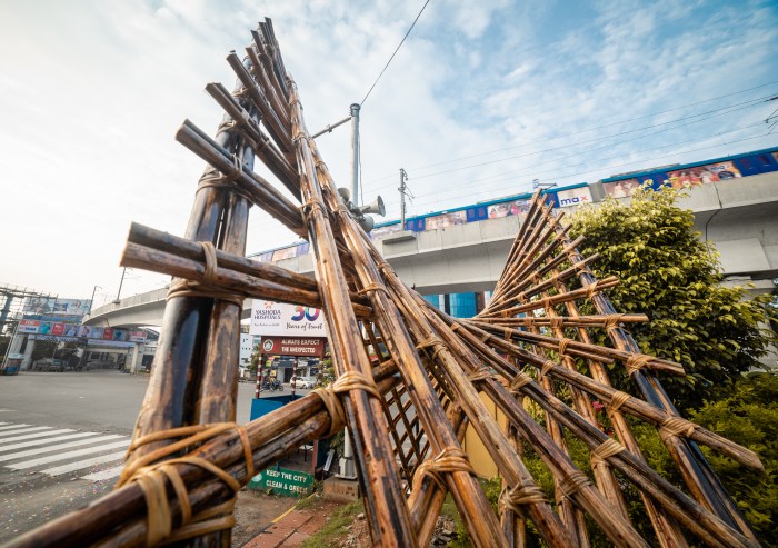 Cane or rattan furniture is a traditional and familiar craft of indigenous interior design in India. This craft, passed down from generation to generation, uses locally-sourced, biodegradable material, and is a relic of rich cultural significance that we are adapting to addresses pressing issues of environmental concern and sustainability using traditional technology that has evolved and been perfected over decades. The skills and know-how of the cane craft has been concentrated to furniture design, art, craft and household accessories fabricated and sold by small-scale industries. With an aim to explore the structural and geometric capabilities of this material, its methods and techniques beyond the traditional, DesignAware and ard ارض have come together to collaborate on a series of urban installations for Hyderabad Design Week, made using locally-sourced cane, which creates a dialog between parametric design and the vernacular design, in a strong attempt to promote a contemporary approach to the craft of cane design, and to realize its significance in a world of depleting resources.