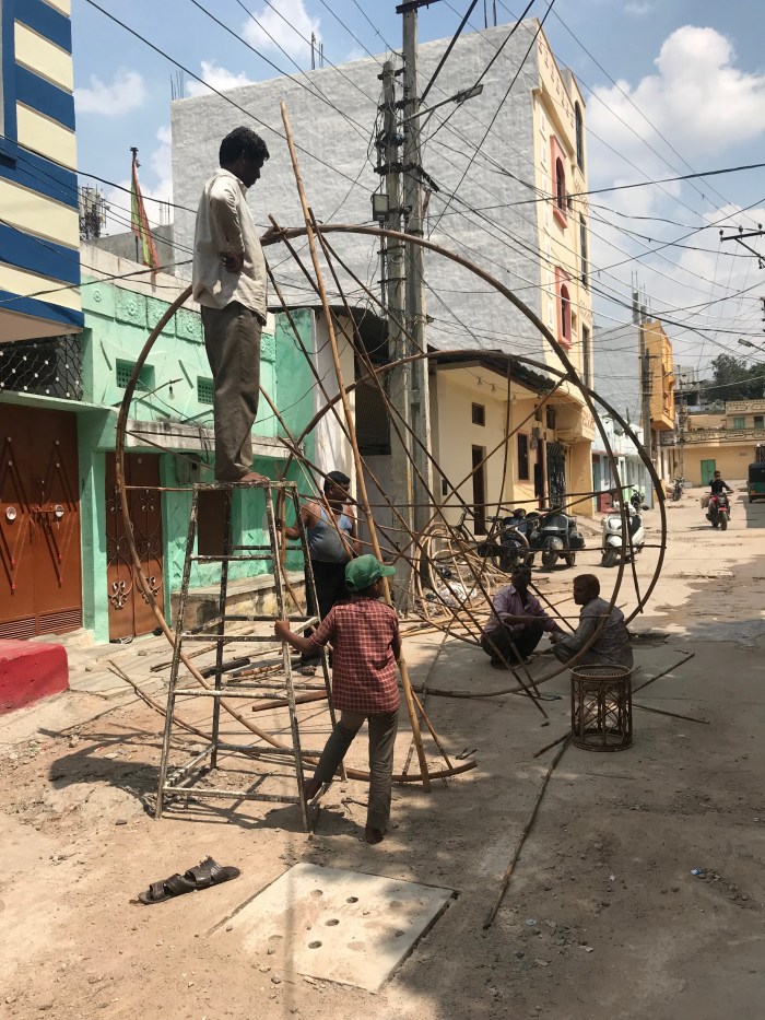 Cane or rattan furniture is a traditional and familiar craft of indigenous interior design in India. This craft, passed down from generation to generation, uses locally-sourced, biodegradable material, and is a relic of rich cultural significance that we are adapting to addresses pressing issues of environmental concern and sustainability using traditional technology that has evolved and been perfected over decades. The skills and know-how of the cane craft has been concentrated to furniture design, art, craft and household accessories fabricated and sold by small-scale industries. With an aim to explore the structural and geometric capabilities of this material, its methods and techniques beyond the traditional, DesignAware and ard ارض have come together to collaborate on a series of urban installations for Hyderabad Design Week, made using locally-sourced cane, which creates a dialog between parametric design and the vernacular design, in a strong attempt to promote a contemporary approach to the craft of cane design, and to realize its significance in a world of depleting resources.