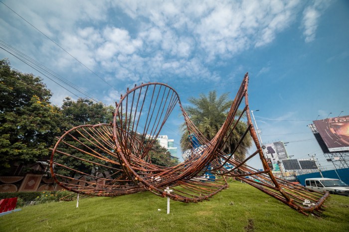 Cane or rattan furniture is a traditional and familiar craft of indigenous interior design in India. This craft, passed down from generation to generation, uses locally-sourced, biodegradable material, and is a relic of rich cultural significance that we are adapting to addresses pressing issues of environmental concern and sustainability using traditional technology that has evolved and been perfected over decades. The skills and know-how of the cane craft has been concentrated to furniture design, art, craft and household accessories fabricated and sold by small-scale industries. With an aim to explore the structural and geometric capabilities of this material, its methods and techniques beyond the traditional, DesignAware and ard ارض have come together to collaborate on a series of urban installations for Hyderabad Design Week, made using locally-sourced cane, which creates a dialog between parametric design and the vernacular design, in a strong attempt to promote a contemporary approach to the craft of cane design, and to realize its significance in a world of depleting resources.