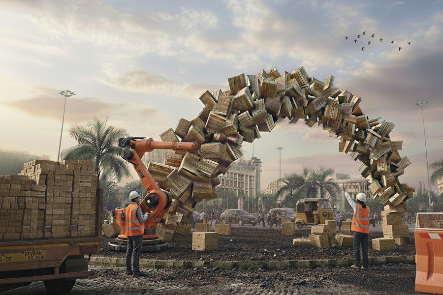 FLOCK: The Bridge Type: 2021, digital craft, Installations, machine-learning/artificial intelligence, programming matter, Public, Recycling + Upcycling, S, Urbanism